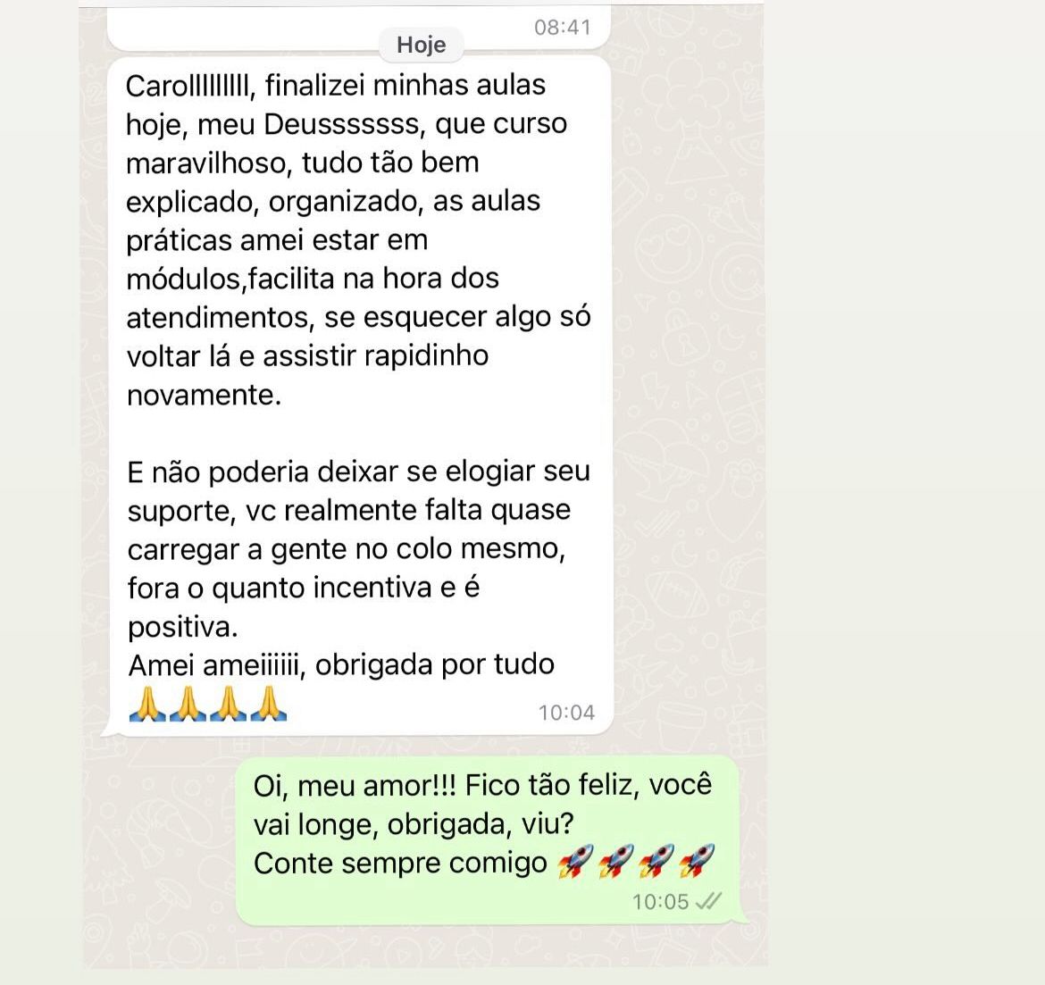 Disponibilizo meu suporte individual por um ano no WhatsApp. Você em contato direto com sua mentora.